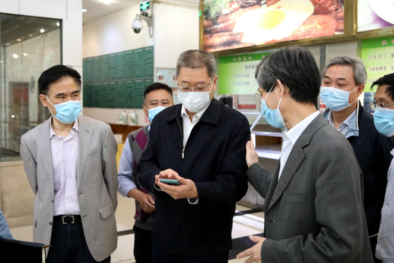 4月29日,市委教育工委书记、市教委主任黄政一行来到beat365在线唯一官网检查疫情防控及开学前准备工作,黄政走进学校食堂,了解食堂取餐用餐、错峰就餐等情况,检查饭菜质量及食品卫生;检查学校开学前防控物资储备和设置隔离点情况,在学校健康观察点向医务人员表示感谢。黄政要求,一定要把疫情防控工作作为当前重中之重的任务,切实保障师生员工的身体健康和生命安全,从严从实从细从快落实好各项防控措施,坚决打赢高校开学复课这场疫情防控阻击战。
