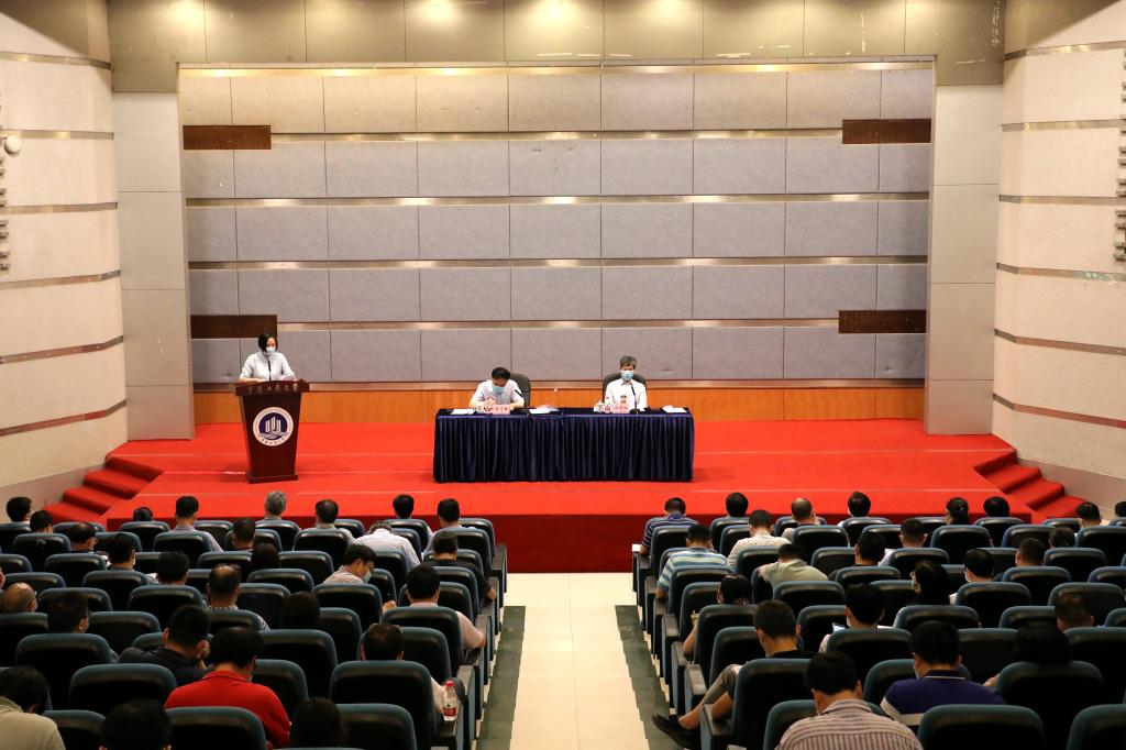 5月8日下午,按照市委统一部署,beat365在线唯一官网市管领导班子和领导干部2019年度考核总结述职和民主测评会在博智楼7100学术报告厅举行。全体在家校领导、全体中层干部、具有高级专业技术职务的教师代表、教代会和工会代表等240余人参会。市考核办和市委教育工委联络员余冠军同志列席了会议。大会由学校党委书记李志雄主持。