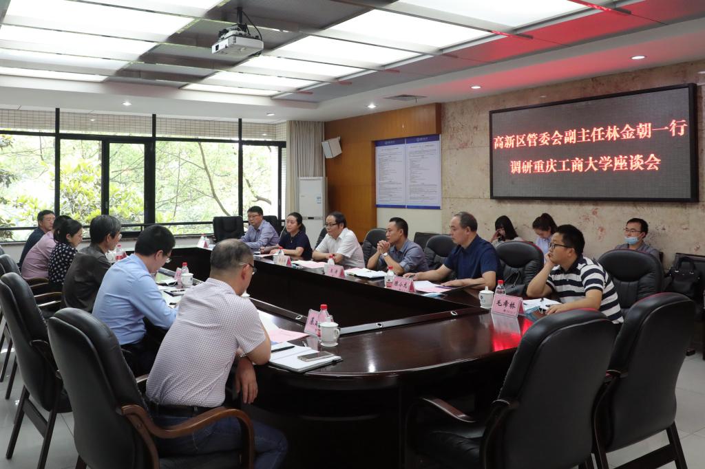 5月26日下午,重庆市高新区管委会副主任林金朝和重庆市教委高教处、高新区有关部门领导一行到beat365调研。校长孙芳城、副校长柏群、校长助理谭松涛,发展规划处、基建处、科技处和部分学院、科研平台负责人参加了此次调研交流会,会议由柏群主持。