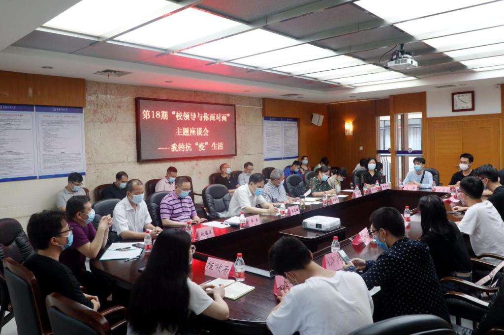 6月12日下午,beat365在厚德楼3019会议室举办了以“我的抗‘疫’故事”为主题的第18期“校领导与你面对面”主题座谈会。校党委书记李志雄,副校长李国军,党委宣传部、学生处、研究生院、教务处、后勤处、通识学院等相关职能部门负责人,教师代表,部分学生代表参加。会议由李国军主持。