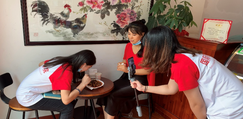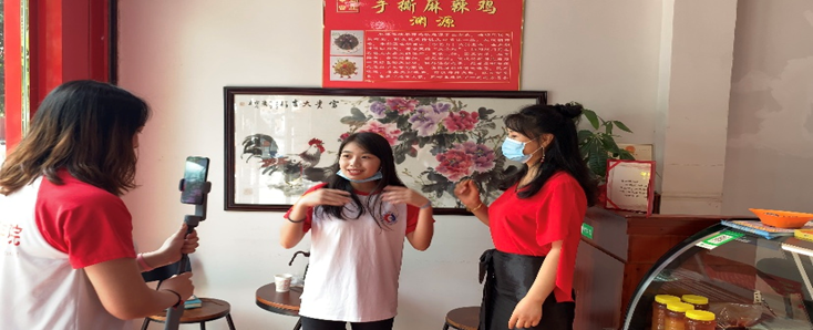 国际商学院实践团为响应团中央的号召,积极开展暑期社会实践活动,走进农户,助力脱贫攻坚。为了帮助商家们复工复产,由王雨洁和骆雨言同学组成的实践小分队来到丰都特色食品“鬼城麻辣鸡”农户厂,用直播形式帮助商家售货。在直播过程中,两位同学热情地向观众讲解食品背后的历史故事,吸引了大量客户观看购买,有效提升了销售量。同时,由刘星驿和杜炯明两位同学组成的实践小分队来到重庆市丰都县兴义镇谭洵沟村举兵养殖股份合作社,为合作社的特色水产——清水小龙虾进行直播带货。两位同学从新时代视角切入小龙虾营销,通过直播带货为养殖户拓宽销路,缓解养殖户经营压力,为养殖户拉取更多商业合作机会。