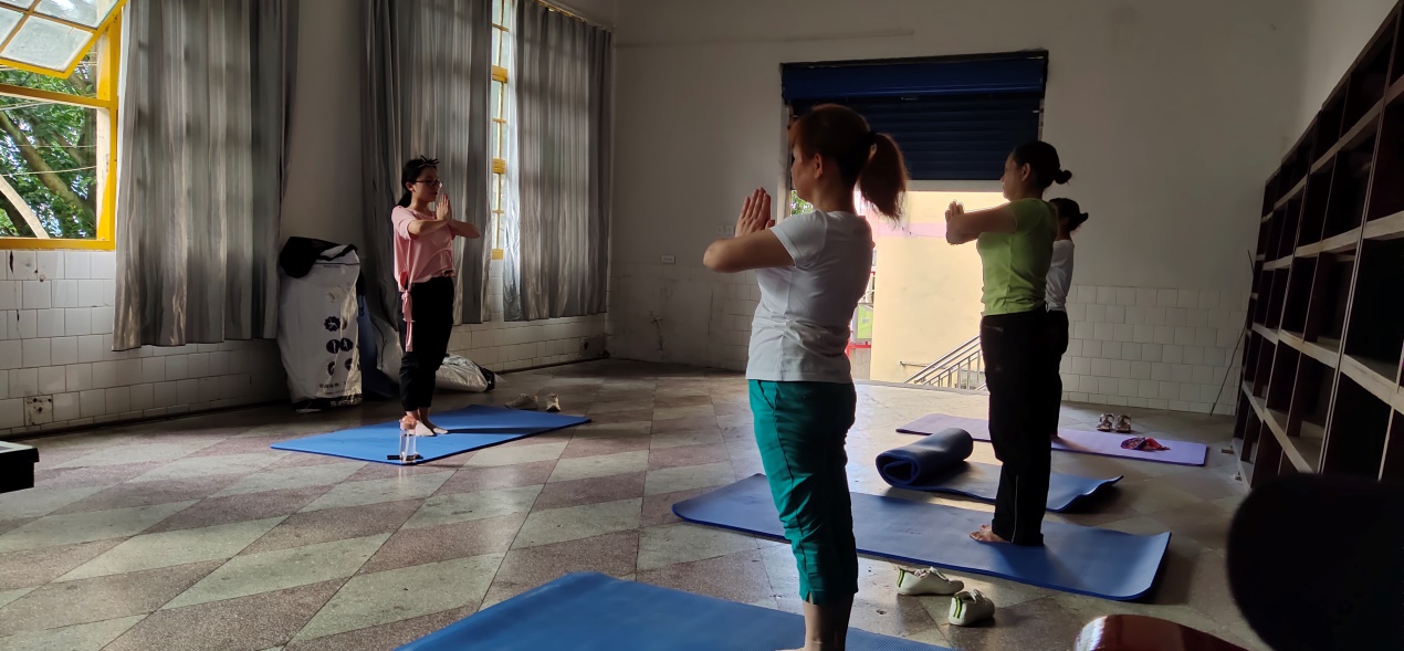 志愿者为社区居民上瑜伽课