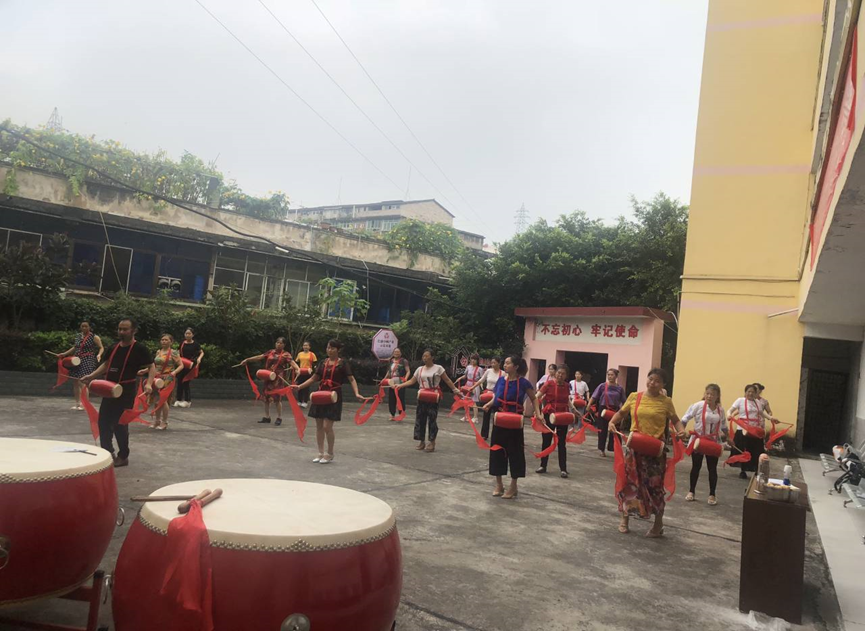 志愿者与社区居民的威风锣鼓排练