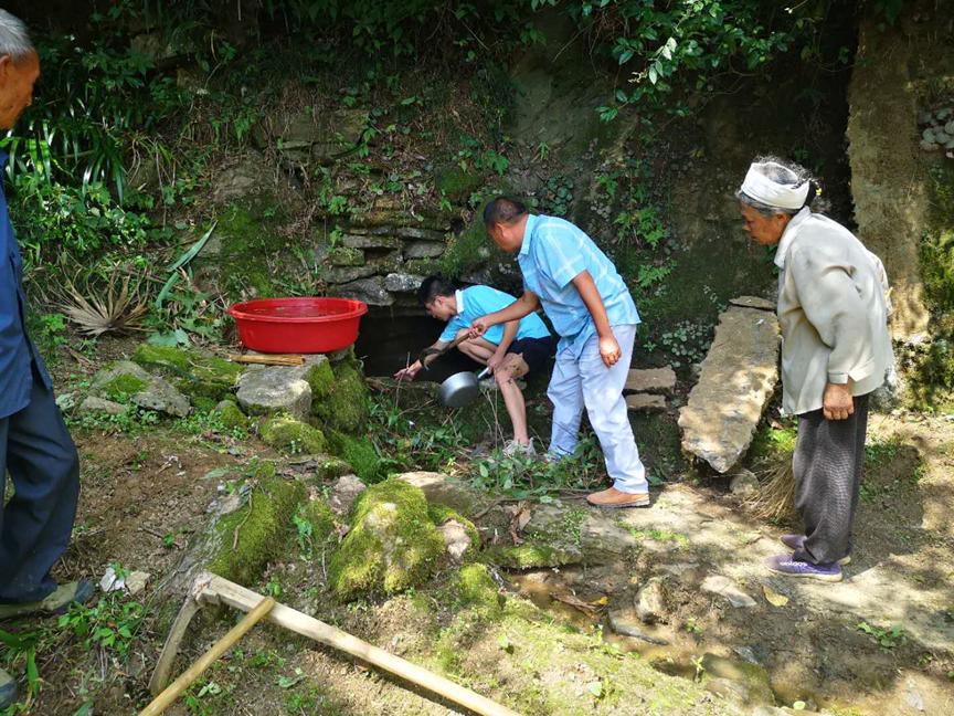 成员帮助贫困户清理水井