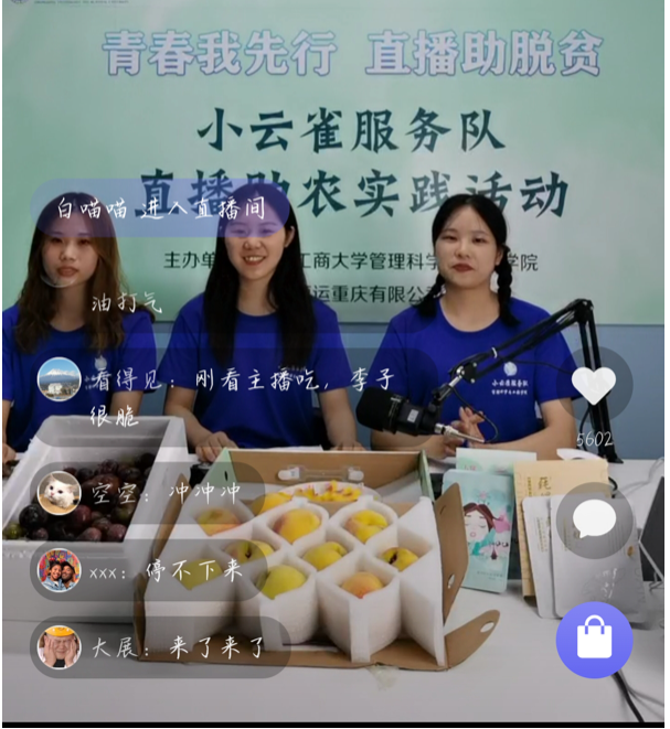 为响应团中央脱贫攻坚号召,管理科学与工程学院小云雀电商助农实践团通过直播带货的方式无偿帮助贫困地区农户、企业销售农产品,用自己所学结合实践助力脱贫攻坚。