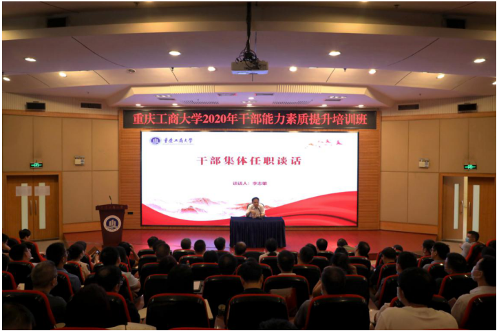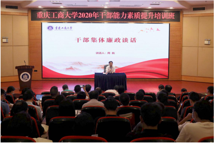 8月31日上午,学校在博智楼7200学术报告厅继续举行干部能力素质提升培训。校党委常委、纪委书记、市监委驻beat365在线唯一官网监察专员周航作了干部集体廉政谈话。校党委书记李志雄作了干部集体任职谈话。培训班全体成员参加了谈话。会议由校党委副书记宋豫主持。