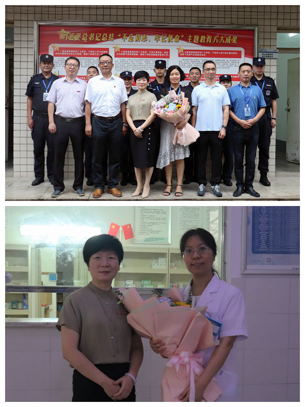 宋豫带队慰问了后勤处校医院田常琴老师、保卫处曹晓丽老师,向她们送上了鲜花和节日的祝福,对她们在疫情防控一线默默无闻的付出表示了感谢。