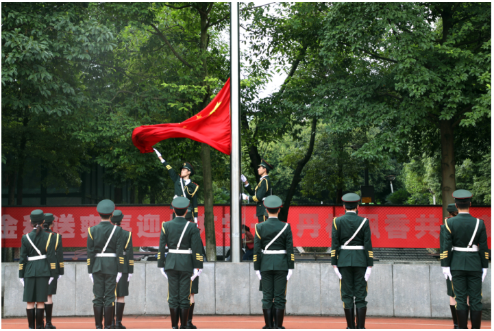 会议开始,举行升国旗仪式,全体师生奏唱中华人民共和国国歌,行注目礼。