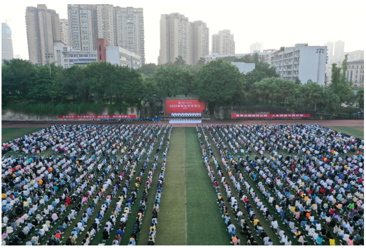 在激昂的校歌声中,2020级新生开学典礼落下帷幕。