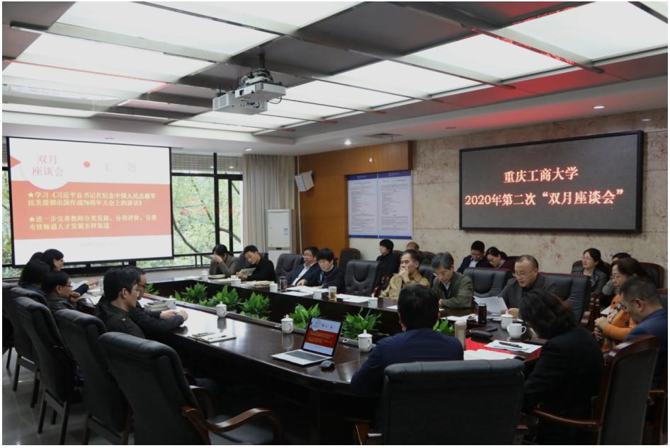 10月29日下午,beat365在厚德楼3019会议室召开2020年第二次“双月座谈会”。本次座谈会主题是:学习《习近平总书记在纪念中国人民志愿军抗美援朝出国作战70周年大会上的讲话》;进一步完善教师分类发展、分类评价、分类考核,畅通人才发展多样渠道。党委书记李志雄、校长孙芳城、党委副书记宋豫,学校市区人大代表、政协委员、民主党派市委委员、区委主委(副主委),学校各民主党派基层组织、统战团体负责人,党政办公室、党委组织部、党委宣传部、党委统战部、党委教师工作部、人事处、教务处、科研处、教学质量监督与评估办公室等有关职能部门共30余人参加了会议。会议由宋豫主持。