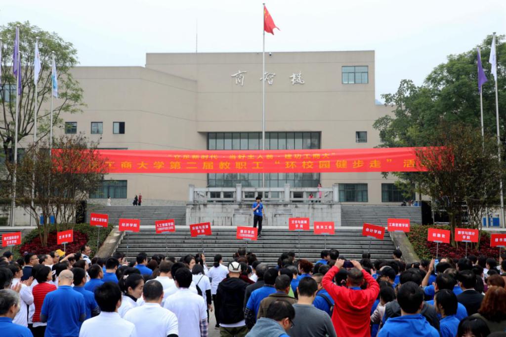 党委副书记宋豫致开场词。她指出,在这个天公作美、阳光明媚的下午,老师们身着运动服展现出无限的朝气与活力,她代表学校和校工会对认真组织与大力支持此次活动的各部门和教职员工表示由衷感谢。她表示,举办此次活动旨在健康身体、愉悦心情、增进交流、抖擞精神,校园活动应以平安为先,重在参与。她预祝本届健步走活动圆满成功。