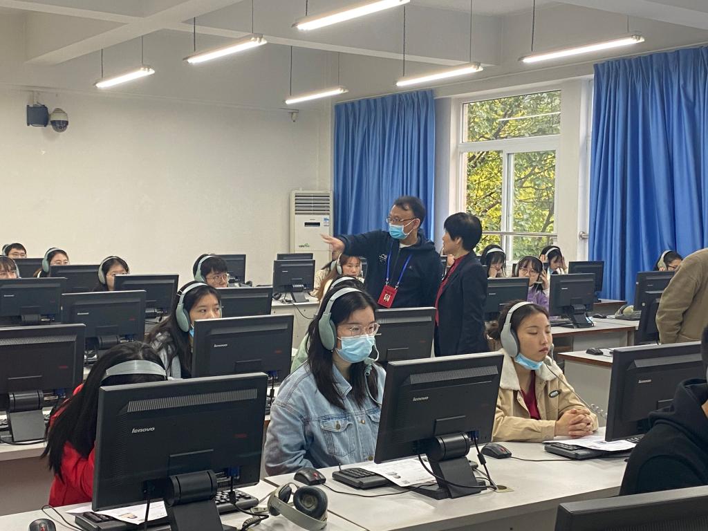 在学校教务处、外国语学院、后勤处、保卫处等部门的共同协作下,本次考试顺利完成。为高质量完成考务工作,确保考试顺利进行,学校成立了考试工作领导小组,下设考务组、疫情防控组、安全保卫组、后勤保障组、考场设施设备组、宣传组、教务处办公室值班组等7个工作组,各项考务工作进展顺利,各工作人员和监考教师认真工作,为考生提供了良好的考试环境及服务。