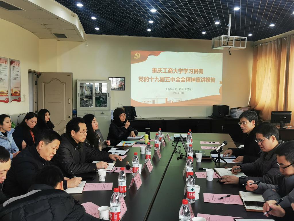孙芳城作了“学习贯彻党的十九届五中全会精神宣讲报告”。他从党的十九届五中全会精神、教育系统学习贯彻全会精神的相关要求、重庆市学习贯彻全会精神的相关要求以及beat365在线唯一官网学习贯彻全会精神的总体部署等四个部分进行了宣讲。他指出,学习宣传贯彻党的十九届五中全会精神是当前和今后一段时间全党全国人民的一项重要政治任务。他强调,要从全面把握新发展阶段、深刻认识新发展格局、坚持党的全面领导等各个方面详细学习领会五中全会精神,对标对表,按照全国教育系统、重庆市委和beat365关于学习贯彻全会精神的要求认认真真读原著学原文悟原理,把思想和行动统一到全会精神中来,指导实践、推动工作。