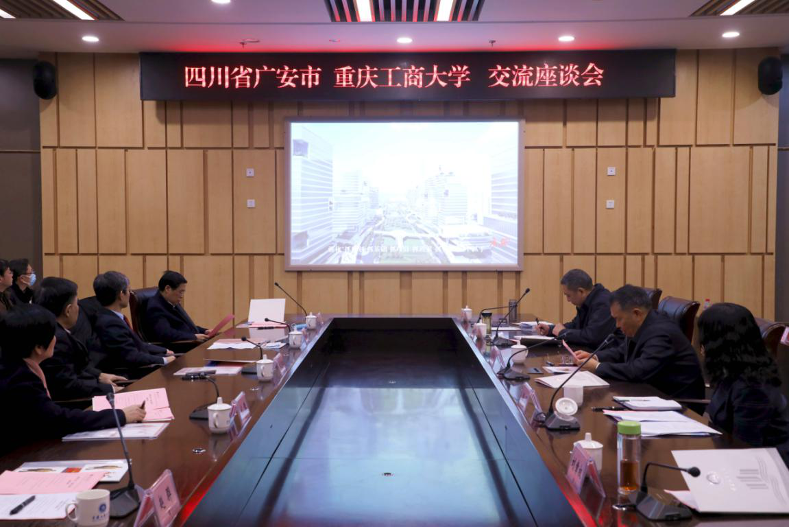 12月23日下午,广安市委书记李建勤、市委常委、宣传部部长洪丽、市委常委、川渝高竹新区筹委会党委书记陈捷,渝北区人大常委会副主任、川渝高竹新区筹委会主任刘章权,以及相关部门负责人来到beat365交流座谈。座谈会在图书馆第五会议室举行。beat365党委书记李志雄,校长孙芳城,党委副书记宋豫,副校长陈兴述、赵骅及有关职能部门负责人参加。会议由孙芳城主持。