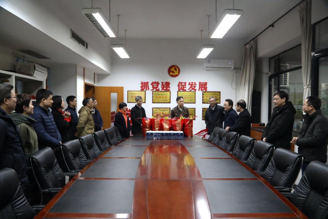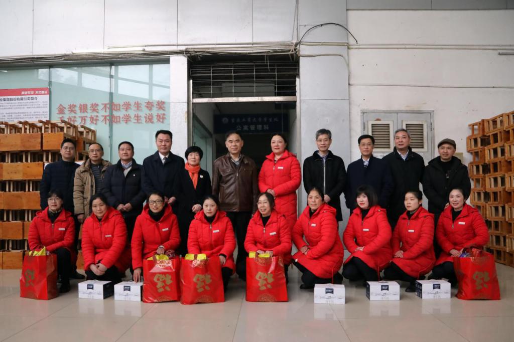 校领导向寒假期间在校全体值班人员赠送慰问品,表达新春问候,并与他们合影留念。