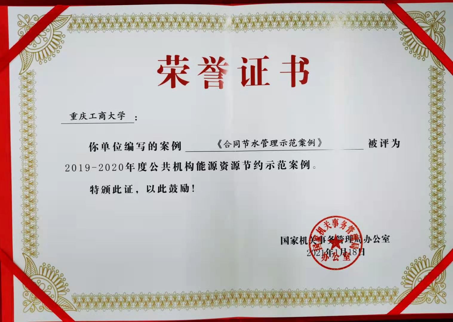 2021年1月18月,国家机关事务管理局发布《国管局办公室关于发布2019-2020年度公共机构能源资源节约示范案例的通知》(国管办发〔2021〕1号),beat365编写的案例《合同节水管理示范案例》被评为2019-2020年度公共机构能源资源节约示范案例。