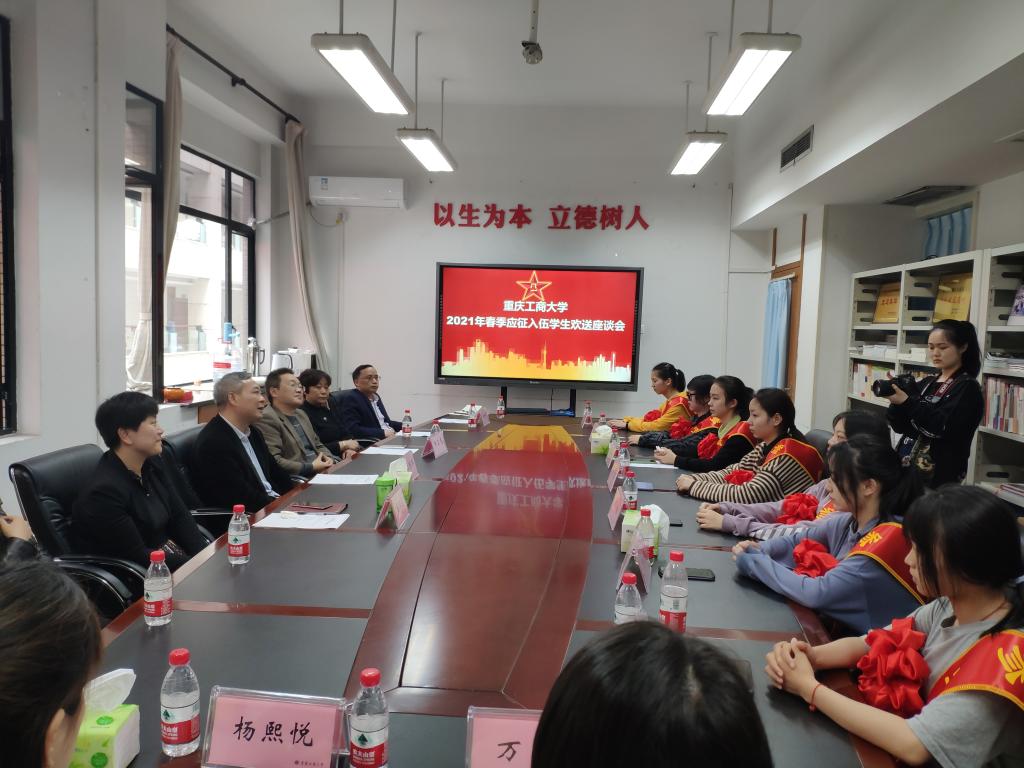 3月18日中午,beat365在党委武装部会议室为即将入伍的7名女生举行欢送座谈会。副校长李国军,校党委武装部负责人、入伍学生家长和退伍学生代表参加座谈会。会议由退伍学生万焮主持。