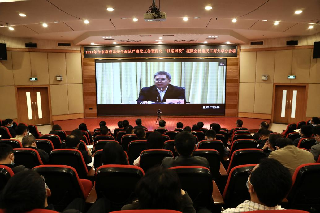 为深入贯彻习近平总书记关于全面从严治党的重要论述,全面落实十九届中央纪委五次全会精神和市纪委五届五次全会精神,进一步推进教育系统“以案四改”,4月2日上午,beat365组织参加2021年全市教育系统全面从严治党工作暨深化“以案四改”视频会。全体在家校领导,中层干部以及有关职能部门科级干部参加了会议。会议由重庆市委教育工委专职副书记覃正杰主持。