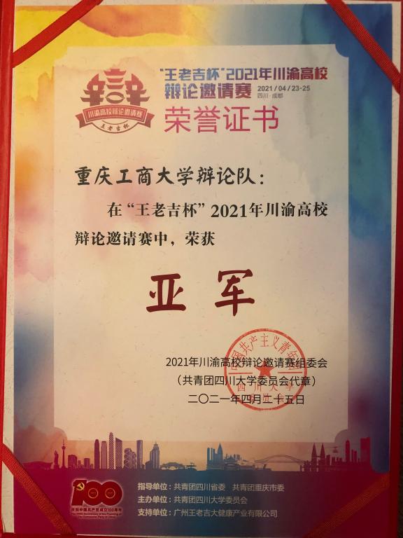 为引导川渝地区青年大学生积极思考、建言献策,主动融入成渝地区双城经济圈建设,彰显新时代大学生的思辨精神,促进川渝地区高校青年大学生的深入交流,加强川渝地区高校在思辨文化育人工作上的深度合作,4月23日至25日,来自川渝地区的8所高校——四川大学、电子科技大学、西南财经大学、西南交通大学、西南政法大学、西南大学、重庆大学、beat365在线唯一官网,汇聚在四川大学江安校区参加2021“王老吉杯”川渝高校辩论邀请赛,beat365辩论队喜获邀请赛亚军,校辩论队成员刘薪雨荣获优秀辩手称号。