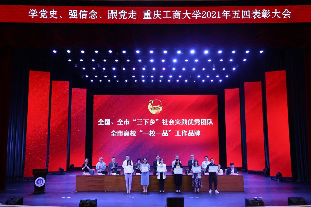 随着庄严的国歌响起,大会正式拉开序幕。大会首先由校团委书记杨娟宣读《共青团beat365在线唯一官网委员会关于表彰2020-2021学年先进集体和个人的决定》,随后为获奖集体和个人代表进行颁奖,颁发奖项包括全国、重庆市社会实践活动优秀团队、重庆市高校“一校一品”优秀团学工作品牌、五四红旗团委、共青团特色创新奖、宣传工作奖、五四红旗团支部、优秀学生会、优秀义工志愿者协会、优秀分团委书记、共青团标兵、优秀团干部、优秀团员及校级“挑战杯”等奖项。