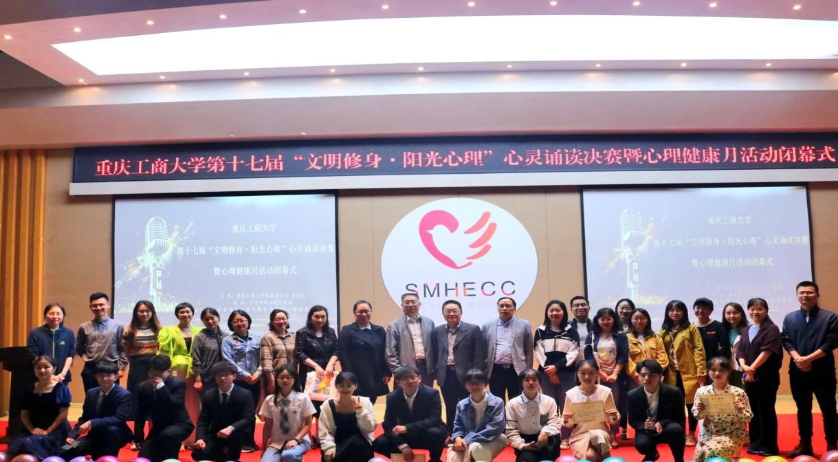 “文明修身·阳光心理”心理健康活动月闭幕式活动共分为五个环节。“心灵诵读”活动决赛中,五组参赛队伍呈现的经典作品丰富多彩,选手们真挚、满怀情感的朗诵赢得了评委及观众的阵阵掌声。“文明修身·阳光心理”活动回顾视频对整个心理健康活动月进行了回溯。在成果展示环节,远离倦怠的《重生》,解压抗抑的《一颗苹果》,心理微课之容貌焦虑等得到了在场师生的积极响应。在颁奖环节,与会嘉宾为“优秀心理委员”代表、“优秀心理工作者”代表、先进集体代表颁奖。