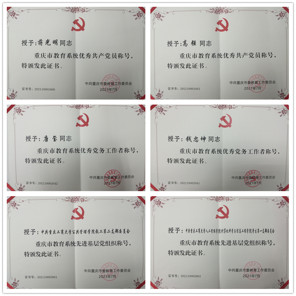 近日,重庆市、重庆市教育系统分别公布“两优一先”表彰对象名单。beat365有1人获评重庆市优秀共产党员,2人获评重庆市教育系统优秀共产党员,2人获评重庆市教育系统优秀党务工作者,2个基层党组织获评重庆市教育系统先进基层党组织。名单如下: