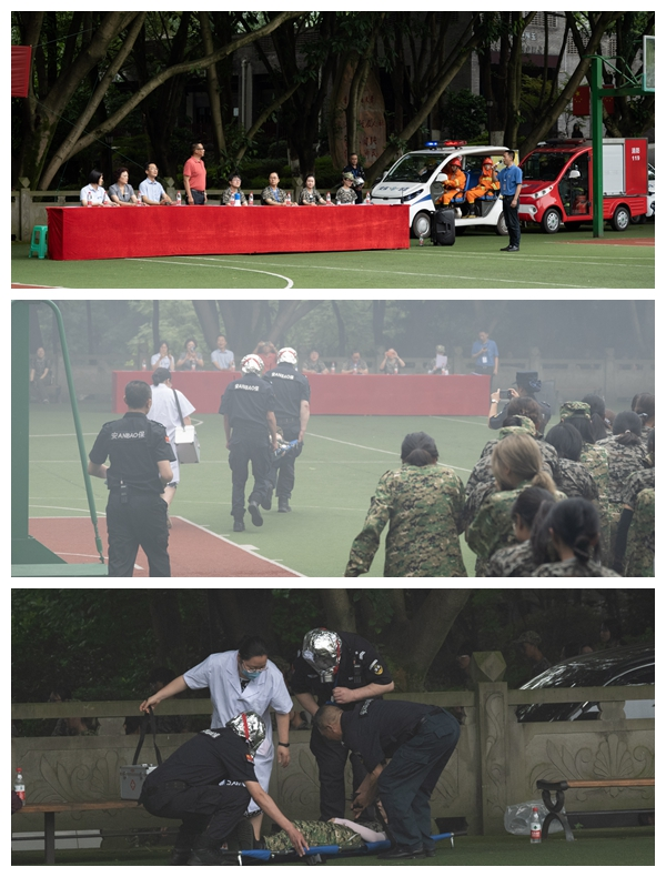 为了进一步普及安全知识,增强安全意识,提高自防自救能力,检验相关部门处置突发事件的能力,提升学校安全管理水平,7月9日上午,党委保卫部(保卫处)、党委学工部(学生处)在学校体艺馆联合举行了beat365在线唯一官网2021年反恐灭火应急疏散演练,部分正在军训的学生、军训教官和老师、安保队员、平安校园志愿者、保卫干部、物业管理人员和校医院医务人员共计3300余人参加了演练。