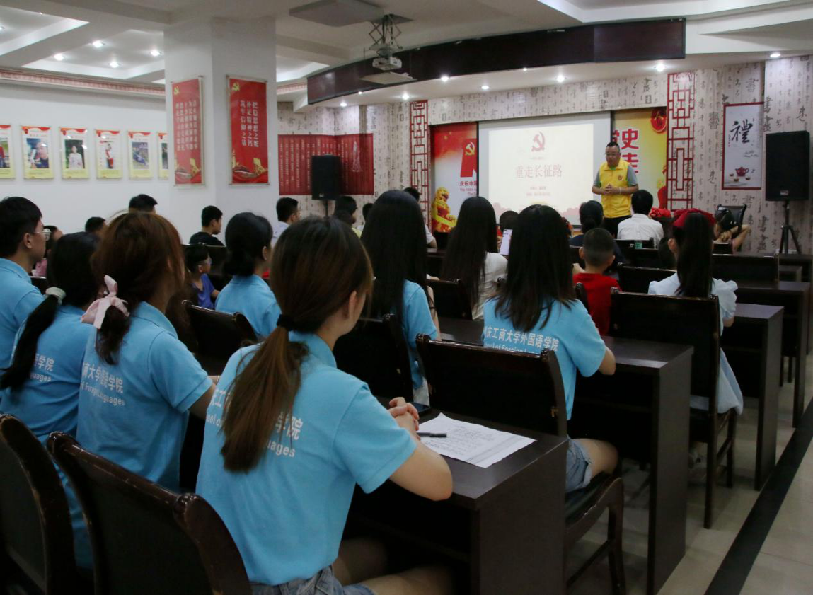 为引导广大社区居民朋友们学党史、知党事、感党恩、听党话、跟党走,7月15日上午,重庆市渝中区社区居民和beat365在线唯一官网外国语学院2021暑期“三下乡”社会实践团一起上了一堂关于“红军长征”的特色党课,重庆市团校校长涂凯一行人莅临现场听取党课。重庆市渝中区老街公益文化发展中心成员童思斯从走长征路的前提、红军为什么能够获得长征的胜利以及红军怎样在长征途中获得老百姓的支持这三方面为同学们带来一堂别开生面的特色党课。同学们认真听讲,收获颇丰。