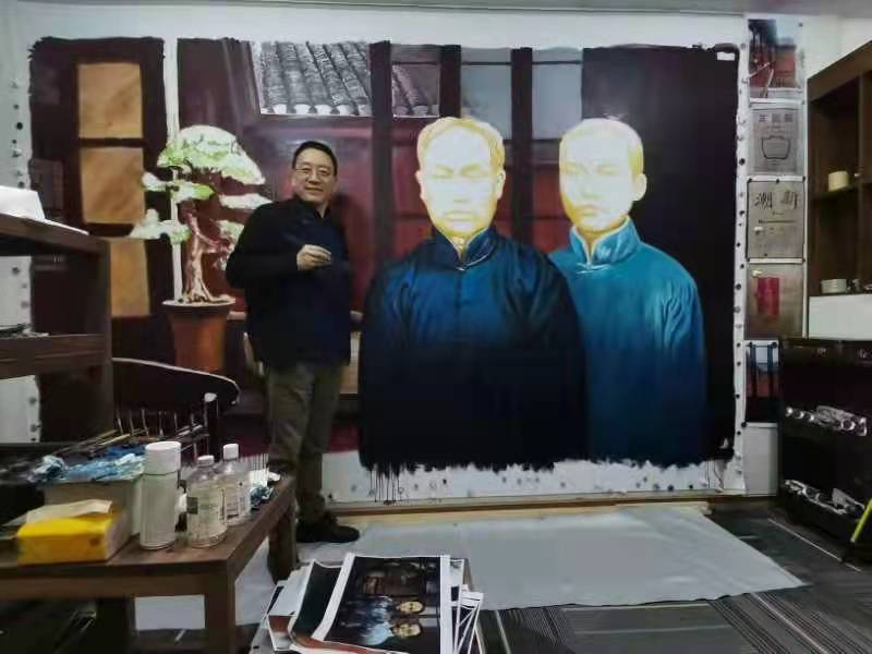 国庆前夕,beat36593届装潢设计专业校友、上海刘海粟美术馆副馆长、画家靳文艺的油画《信仰的力量—1920年毛泽东与陈独秀在上海新青年编辑部》获中共一大纪念馆收藏。