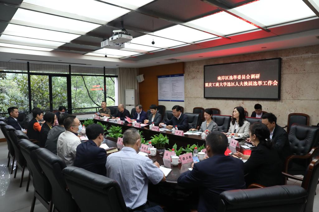 10月14日上午,南岸区人大常委会主任、区选委会主任魏小红,南岸区委组织部部长、区选委会副主任杨继成,区人大常委会副主任、区选委会副主任梁平,区人大常委会人代工委主任、区选委会委员方芳一行到beat365调研人大换届选举工作。校党委书记、beat365在线唯一官网选区选举工作领导小组组长李志雄,有关职能部门负责人参加了调研座谈。会议由beat365党委组织部部长、beat365在线唯一官网选区选举工作领导小组办公室主任郑夕春主持。