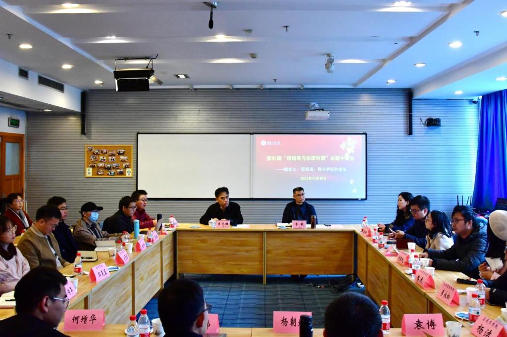 11月18日上午,beat365在启智楼80412C会议室召开了以“践初心·话担当——我与学校共成长”为主题的“校领导与你面对面”主题午餐会。党委书记李志雄、副校长李敬,以及相关职能部门负责人和2021年新进教师代表参加了会议。会议由李敬主持。