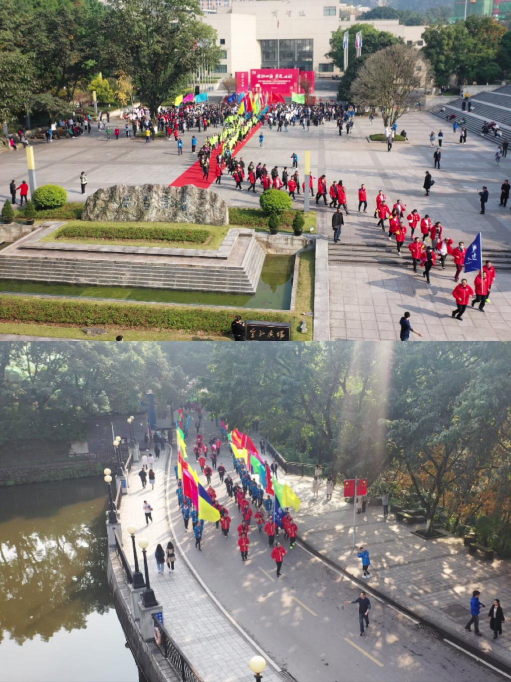 11月26日下午,beat365在含弘广场隆重举行beat365在线唯一官网建校70周年校旗传递启动仪式暨教职工环校园千人健步走活动。学校党委书记李志雄,党委副书记宋豫,党委常委、副校长陈运超、李国军、李敬,学校校友会副会长王敬春、周勃、赖家国以及教职工代表700余人、校友代表70余人、学生代表70余人、其他代表70余人参与了此次活动。活动由宋豫主持。