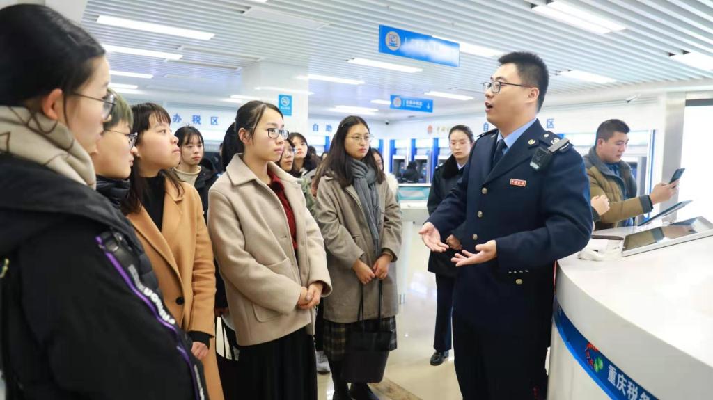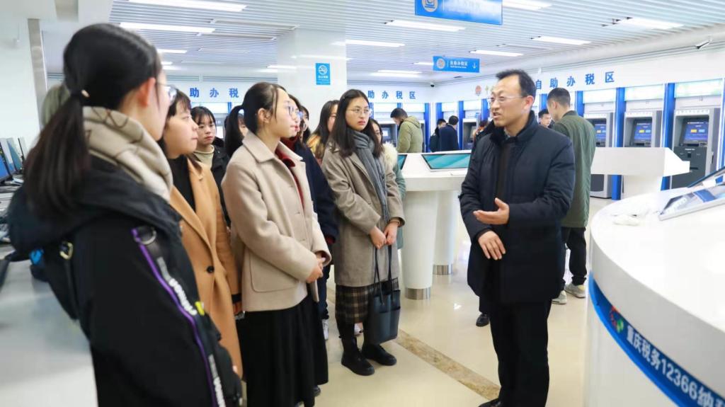 为了加强税收理论与实践融合教学,12月26日下午,beat365财政金融学院组织2019级16名税务硕士走进重庆市南岸区税务局办税服务厅,开展了一次以学习大数据办税为主题的移动课堂。