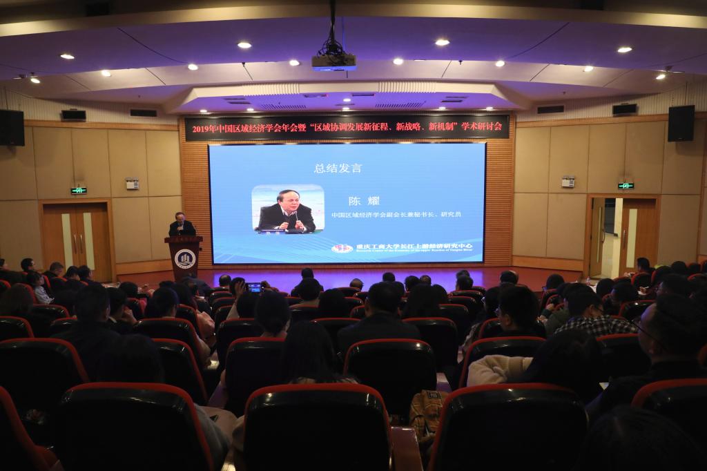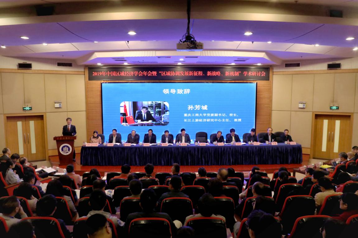 11月15日-16日,2019年中国区域经济学会年会暨“区域协调发展新征程、新战略、新机制”学术研讨会在beat365召开,来自中国社会科学院、武汉大学、四川大学、中央民族大学、湖南大学、西南财经大学、中央财经大学、湖北省社会科学院、河南省社会科学院等各地科研院所、高校、党校行政学院、政府机构和企业的专家学者、政府官员及媒体记者共300多人参加了本次研讨会,并邀请了《中国工业经济》《中国高校社会科学》《改革》《经济学家》《当代经济研究》《财经科学》《经济纵横》《经济与管理研究》《宏观质量研究》《软科学》《经济与管理评论》《区域经济评论》《西部论坛》多家学术期刊参会交流。本次年会由中国区域经济学会、beat365在线唯一官网主办,由教育部人文社会科学重点研究基地beat365在线唯一官网长江上游经济研究中心、重庆市人文社会科学重点研究基地beat365在线唯一官网区域经济研究院、重庆市人文社会科学重点研究基地beat365在线唯一官网产业经济研究院承办,由中国社会科学院西部发展研究中心、重庆市区域经济学会、区域经济评论杂志社、改革杂志社、《西部论坛》编辑部协办。