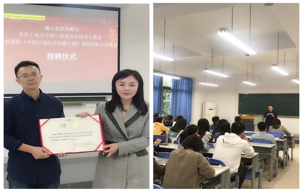 为切实提高研究生“理论-实践-实战”能力,培养社会所需的“理论-实践-实战”三位一体的应用经济研究生人才,beat365第六批重庆市研究生教育优质课程《中国区域经济问题专题》,积极构建“理论-实践-实战”三位一体课程师资团队,分别于2019年10月31日下午、11月1日下午,特邀请南开大学经济与社会发展研究院院长、京津冀协同发展研究院院长、博士生导师、国务院政府特殊津贴专家、中央京津冀协同发展专家咨询委员会成员刘秉镰教授和“百千万人才工程”国家级人选(2017年)、国家“有突出贡献中青年专家”(2017年)、享受国务院政府特殊津贴专家(2018年)、教育部“新世纪优秀人才支持计划”入选者(2008年)魏宇教授,为研究生同学授课《中国区域经济及城市发展70年的理论逻辑与实践走向》和《国家级项目申报对研究生学术能力提升的启示》,课程负责人研究生院副院长王燕教授以及黄志亮教授、龙跃教授、朱沙教授、刘晗博士、唐丽淼博士和来自区域经济、国民经济、数量经济、囯际贸易、产业经济学等5个专业的47名研究生参加了课程分享会。